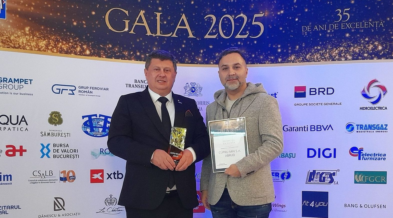 Directorul general Mircea Goia și Bogdan Chițescu, membru al Consiliului de Administrație, au fost prezenți la Gala aniversară de 35 de ani a ziarului Bursa, unde au recepționat premiul. „Dedic acest premiu marii familii Cupru Min, mă refer la foștii și actualii angajați ai companiei”, a declarat Goia.